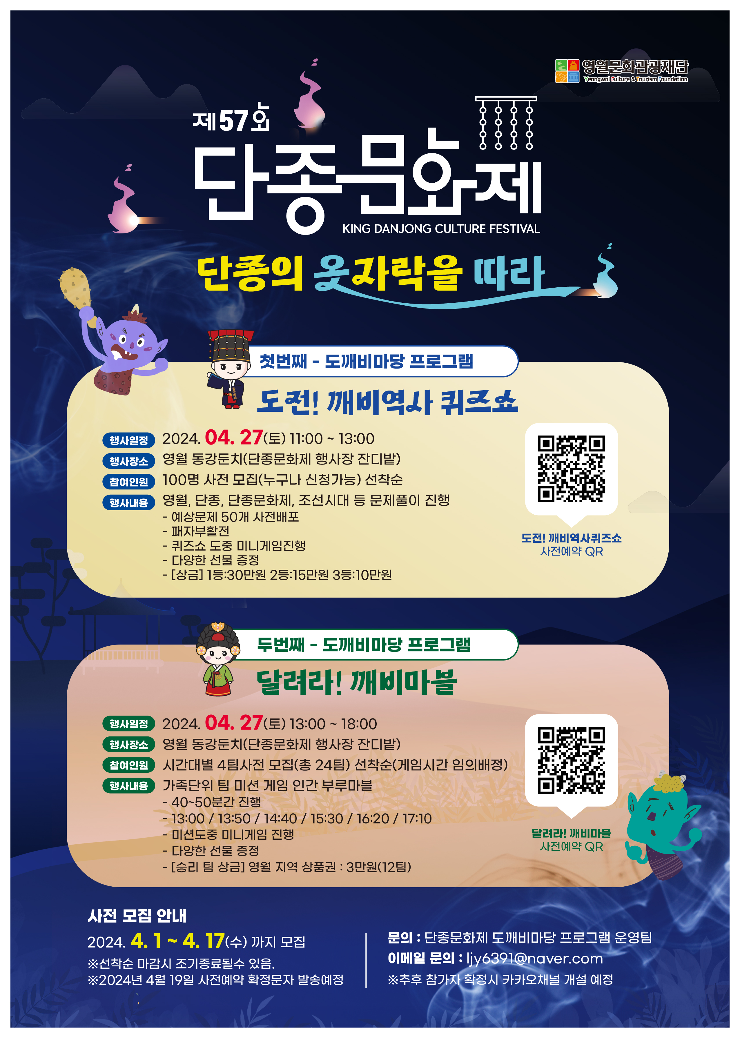 제57회 단종문화제 단종의 옷자락을 따라(깨비역사퀴즈쇼, 깨비마블 사전예약!!)