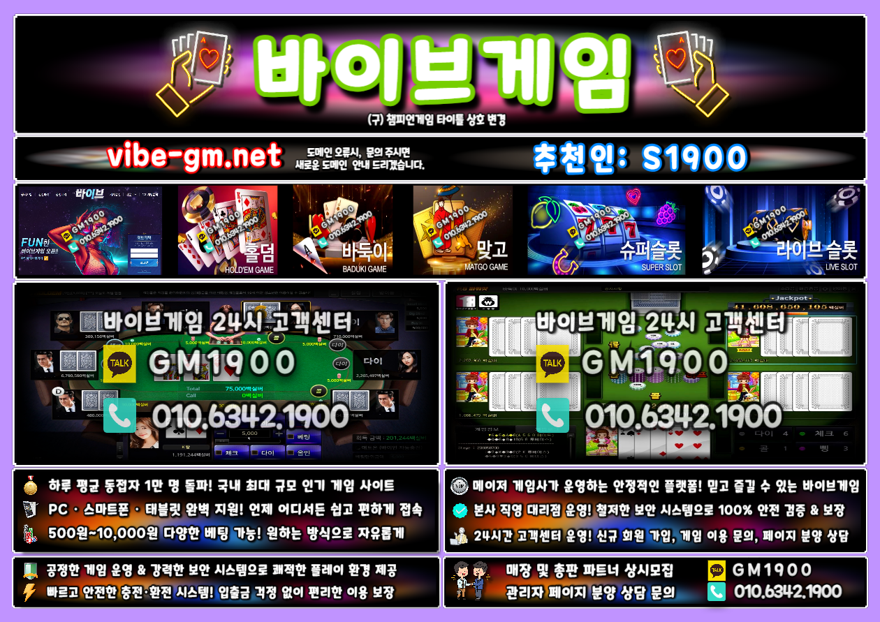 ☎ 바이브게임 24시 고객센터: 0l0-6342-1900 (도메인 주소 접속 불가시 전용 주소 안내)