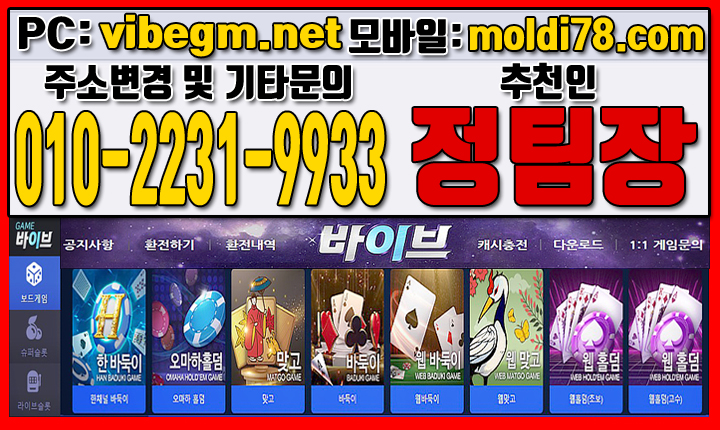 | 카드바둑이방법 바이브바둑이게임 바이브맞고게임 바이브홀덤게임 바이브슬롯게임 바이브게임주소 몰디브게임 |