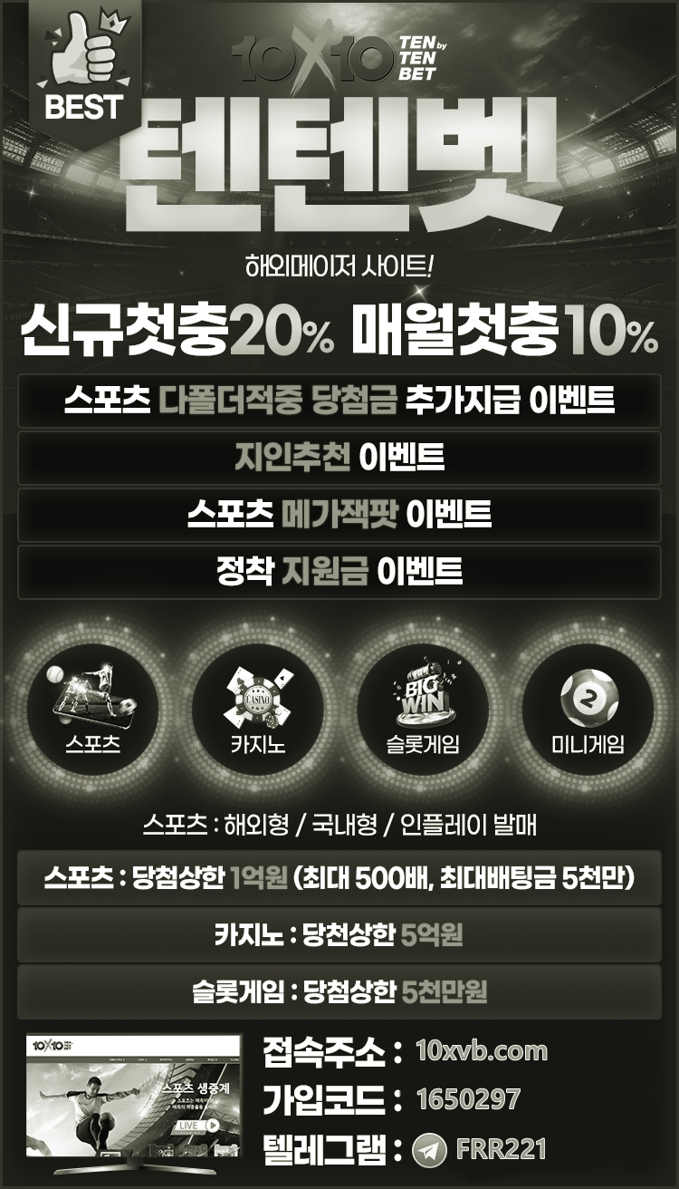 텐텐벳(도메인10xvb.com)|텐텐벳(코드1650297)|텐텐벳보너스|에볼루션사이트텐텐벳|메이저공원|메이저검증업체|검증놀이|메이저사이트순위|안전사이