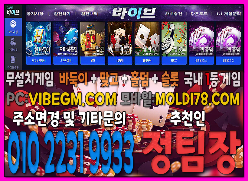 #온라인바둑이 #온라인맞고 #온라인홀덤 #온라인슬롯 #바이브게임 #바이브홀덤 #바이브맞고 #바이브바둑이