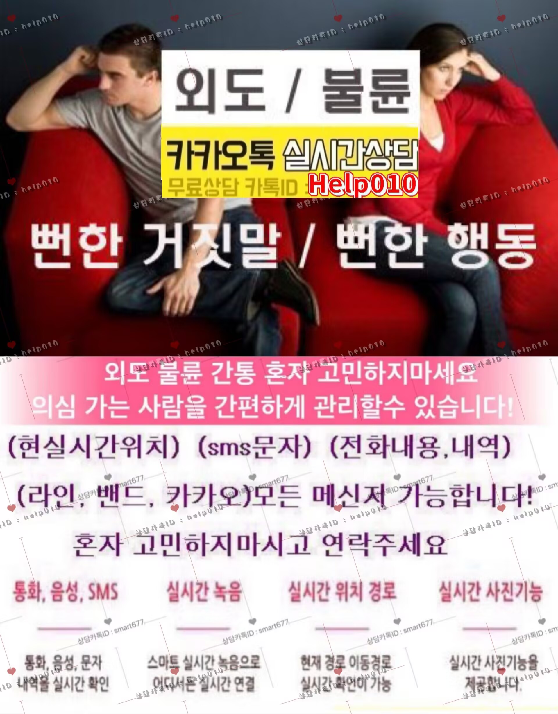 바람난애인/카톡복구/카카오톡해킹/핸드폰도청/실시간도청/외도증거/배우자외도증거/불륜증거/간통증거/통화도청/실시간화면감시/카톡내용확인/통화내용듣기/위치추적/스파이앱/복제폰/쌍둥이폰/핸드폰복제