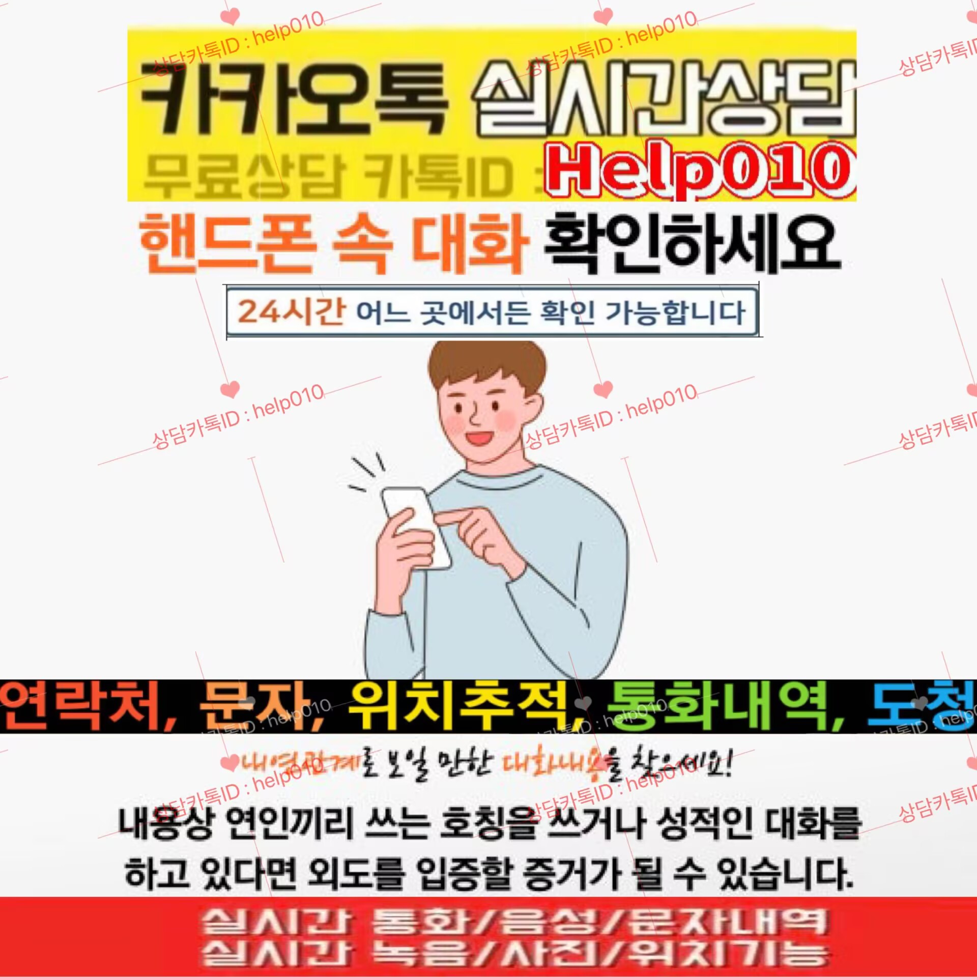 배우자핸드폰도청#휴대폰복제#⭐카톡ID:Help010⭐복제폰#쌍둥이폰#위치추적#카톡해킹#스마트폰해킹#바람난배우자#이혼소송#외도증거수집#카톡내용확인#통화내역확인#문자및메신저확인#사진동영상확인#통화녹음#결제내역및영수증조회#핸드폰백업및데이터복구#스파이앱 등 다양한 기능들로 배우자 핸드폰의 모든것을 실시간 확인해보세요.