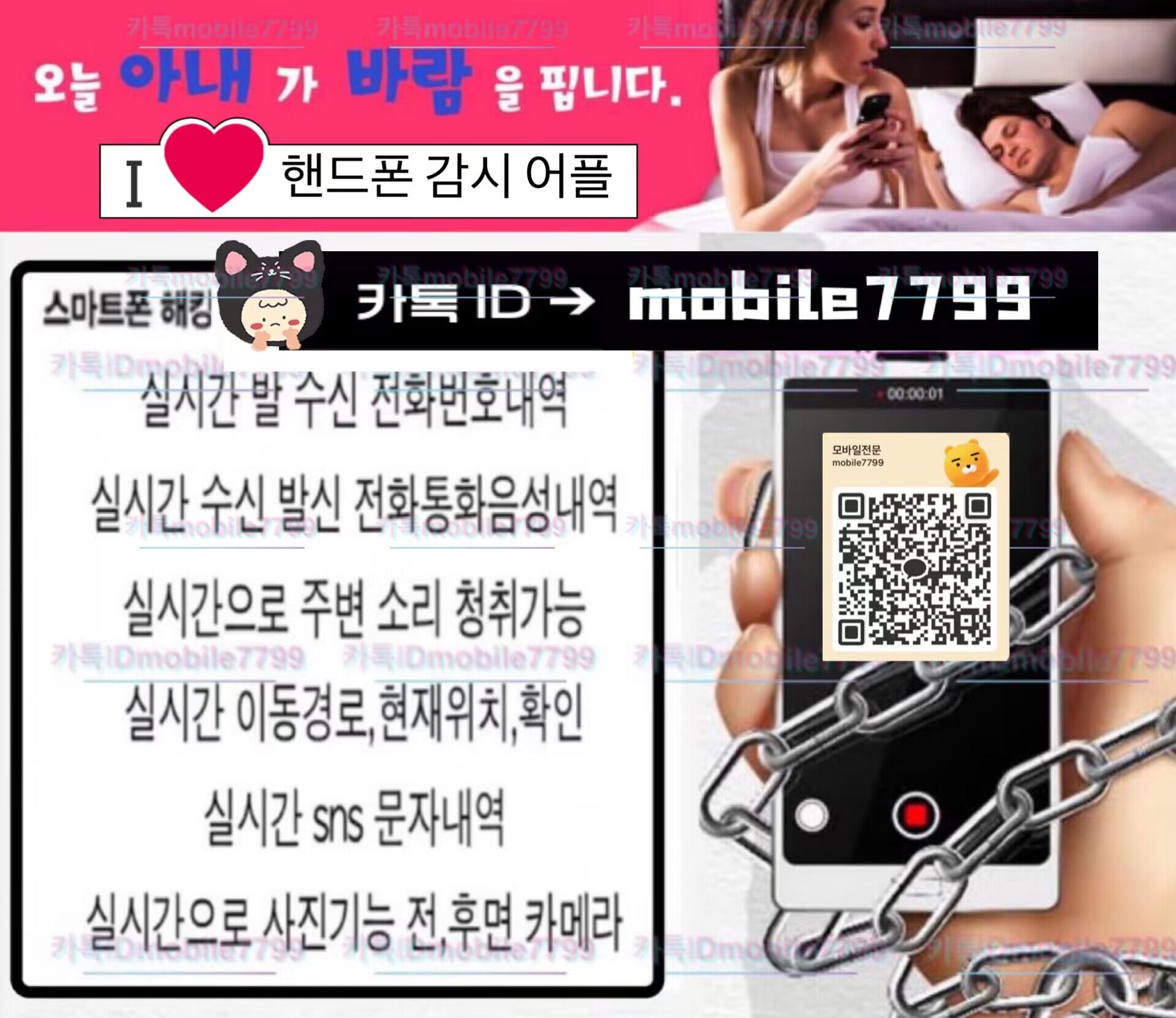 바람난애인/카톡복구/카카오톡해킹/핸드폰도청/실시간도청/외도증거/배우자외도증거/불륜증거/간통증거/통화도청/실시간화면감시/카톡내용확인/통화내용듣기/위치추적/스파이앱/복제폰/쌍둥이폰/핸드폰복제