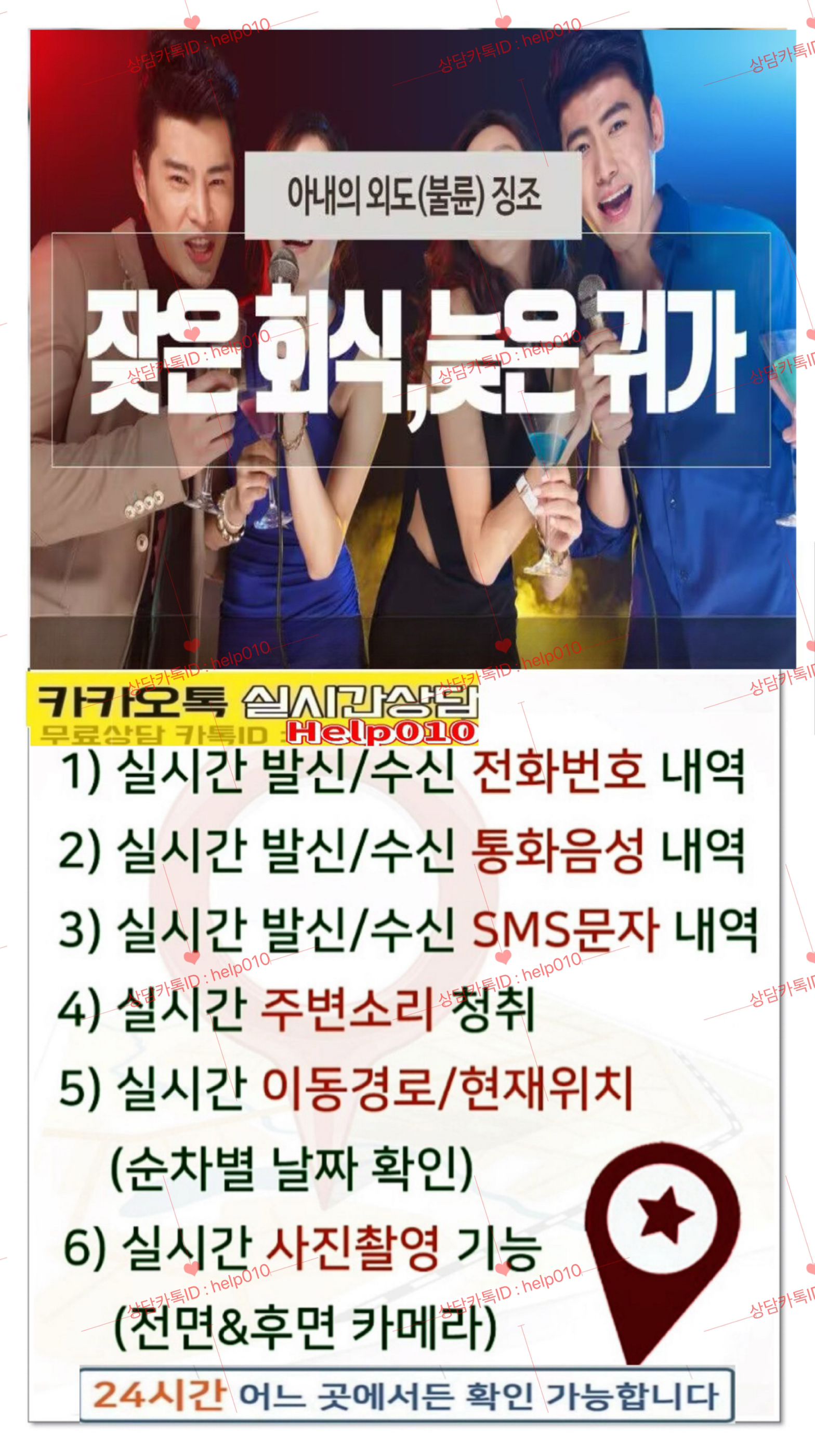 남편카톡해킹방법카톡확인방법카톡ID:help010외도증거수집/위치추적도청/복제폰/쌍둥이폰/인스타해킹.문자통화내역조회/배우자카톡확인 스마트폰흥신소 통화내용청취.주변영상확인※문자발신추적.스파이앱팝니다/삭제된카톡조회