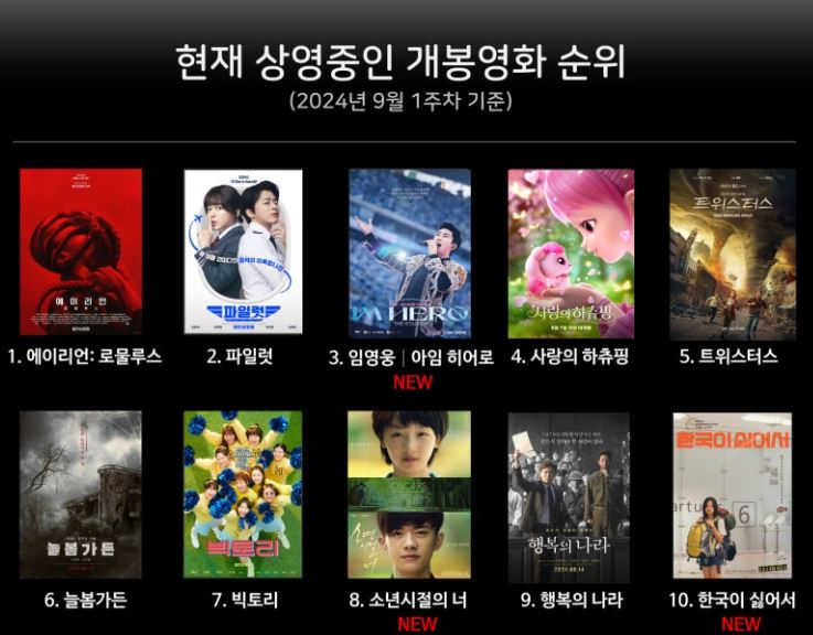 1. 최신 개봉한 영화 및 극장에서 상영한 영화