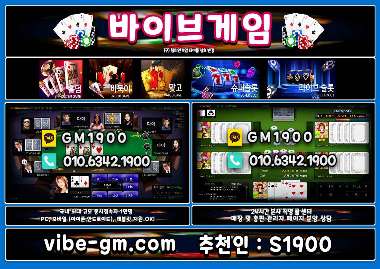 바이브게임 신규 회원 가입 / 바이브게임 이용 문의 / 바이브게임 매장 및 총판 관리자 페이지 분양 상담 24시 콜 센터 : 0I0.6342.1900